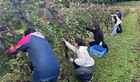 福島の未来を拓く三つ星ワイナリー(日本ワイナリーアワード2025)を率いる吾妻山麓醸造所の代表・牧野修治さんの案内で、参加者は秋空の下、ブドウ収穫や防護ネット撤去を体験し、ワインづくりに込められた想いと手間を実感する学びの時間となりました。