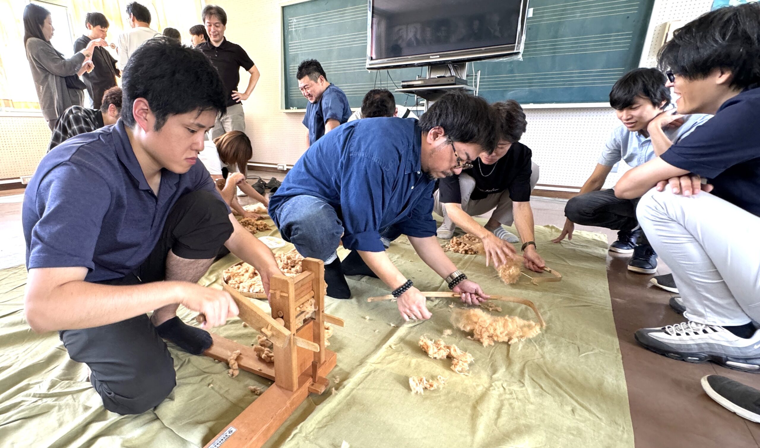 綿花の比較説明を受ける場面では、参加者が意見を交わしながら理解を深めていました。素材を知る学びが価値観を共有するきっかけとなり、今後の協働へつながる期待が高まっていました。