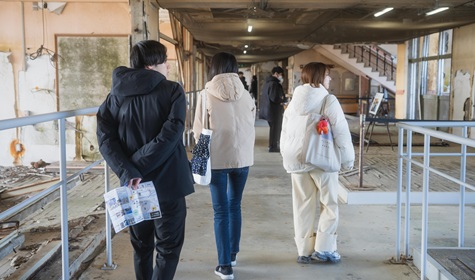 東日本大震災を未来へ伝える請戸小学校を視察。教室に残る震災の跡を前に、参加者は日々の防災意識の大切さを感じていました。静かな校舎に立つひとときが、震災の教訓を伝える責任の重みが胸に響いていく時間となりました。