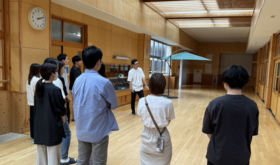 かつての教室が新たな役割を持つ場所へ。Switch久保田さん(写真中心奥)のワクワクが伝わる語り口と丁寧な説明に、参加者は地域資源の再生力に強い関心を寄せている様子でした。