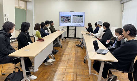 震災を経て大熊町に移住し、キウイフルーツの再生に挑む原口さん。地域に根を下ろし、果樹産業の未来を切り拓こうとする取組や、大熊町で進める農業DXの実践、キウイブランド再生への歩みが、投影資料を用いて丁寧に紹介されました。参加者は、町の復興と事業の背景を一つひとつ理解しながら学びを深めていきました。