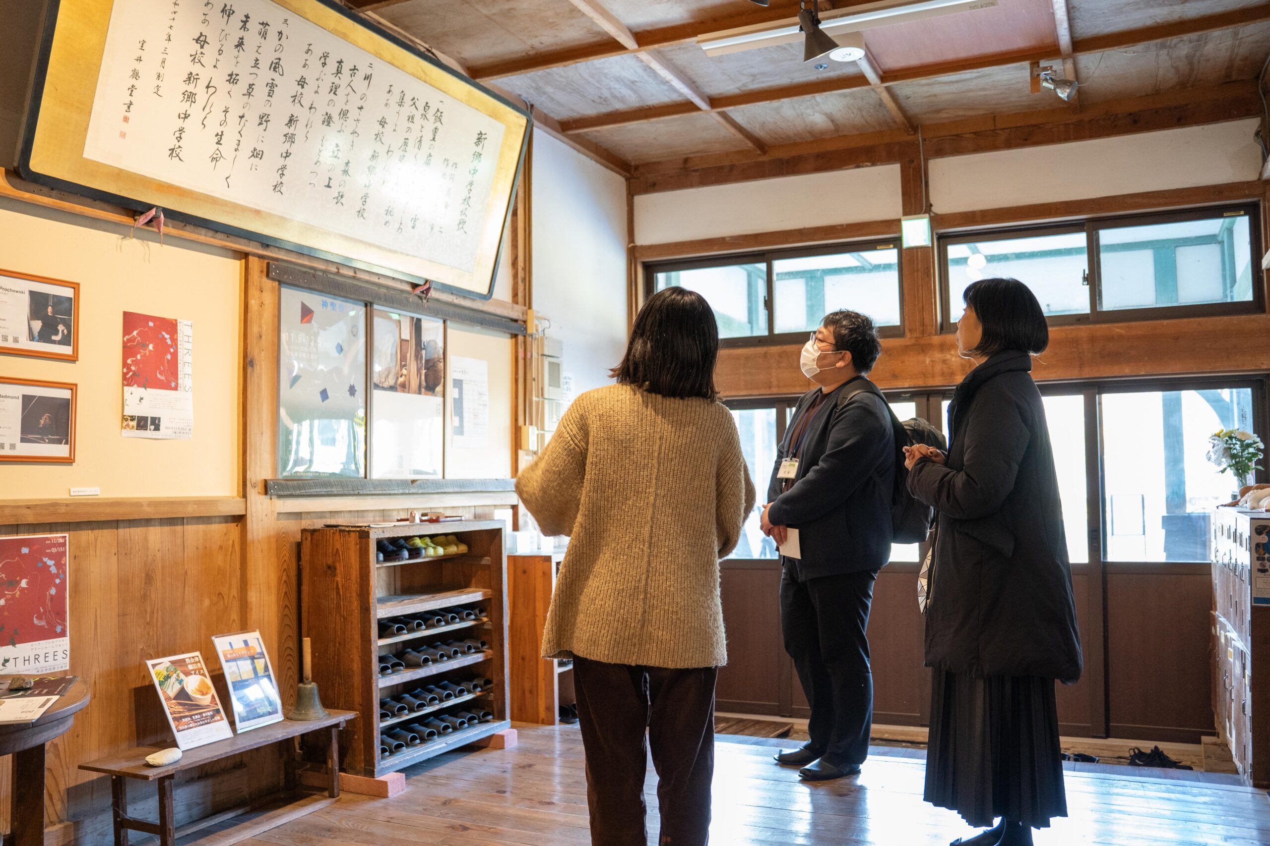 西会津国際芸術村の平澤ことりさん(写真右)の案内で館内を視察しました。旧校舎を活用して芸術を起点とした関係人口づくりに取組んできた歴史、住民とアーティストとの交流、国外との交流も続いている事例の紹介がありました。