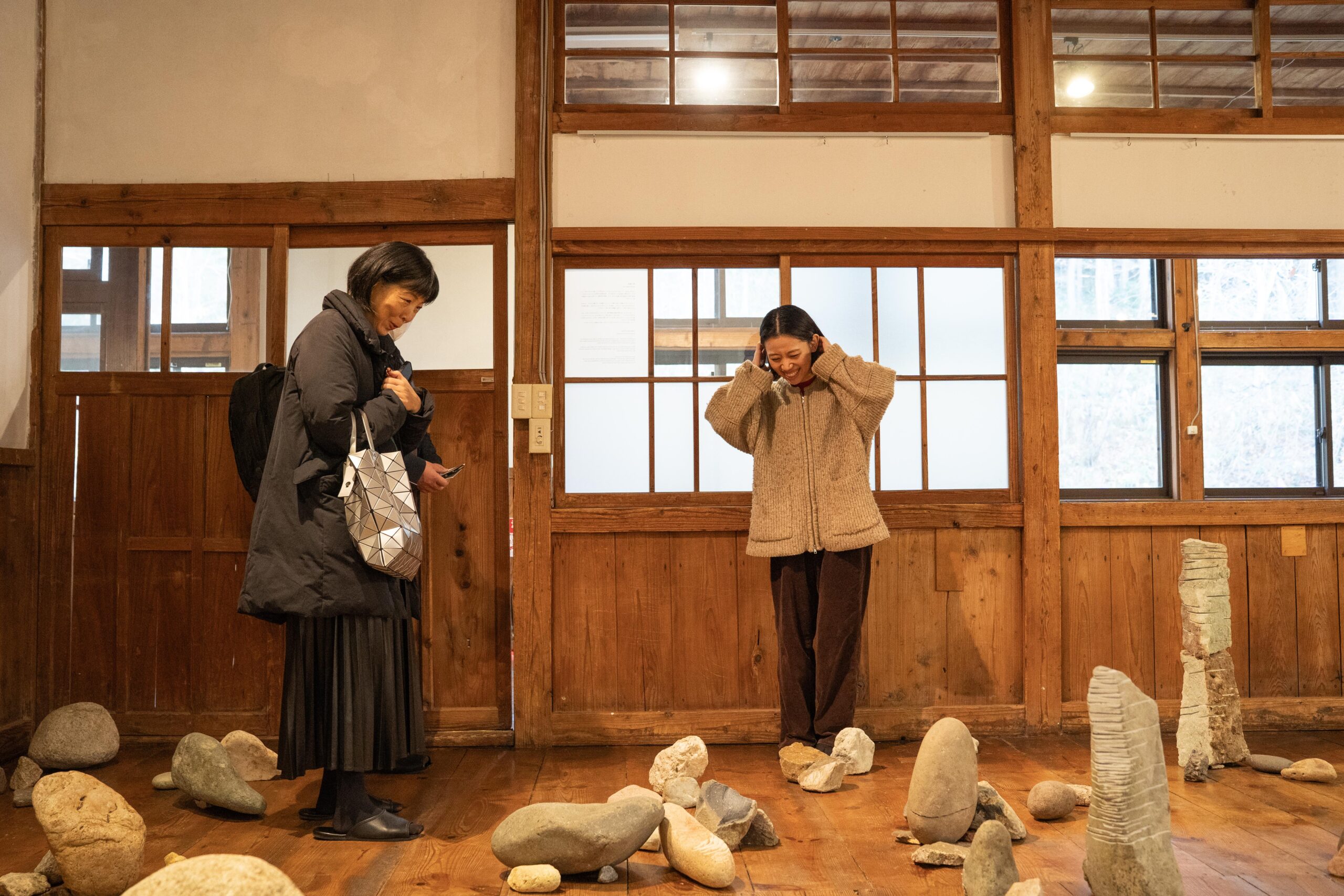 視察した際の企画展では西会津の土地の素材を活かした作品が並び、国内外のアーティストが地域の文化や暮らしを理解しながら創作活動し、創作や展示の一歩先にある交流の深みが語られました。