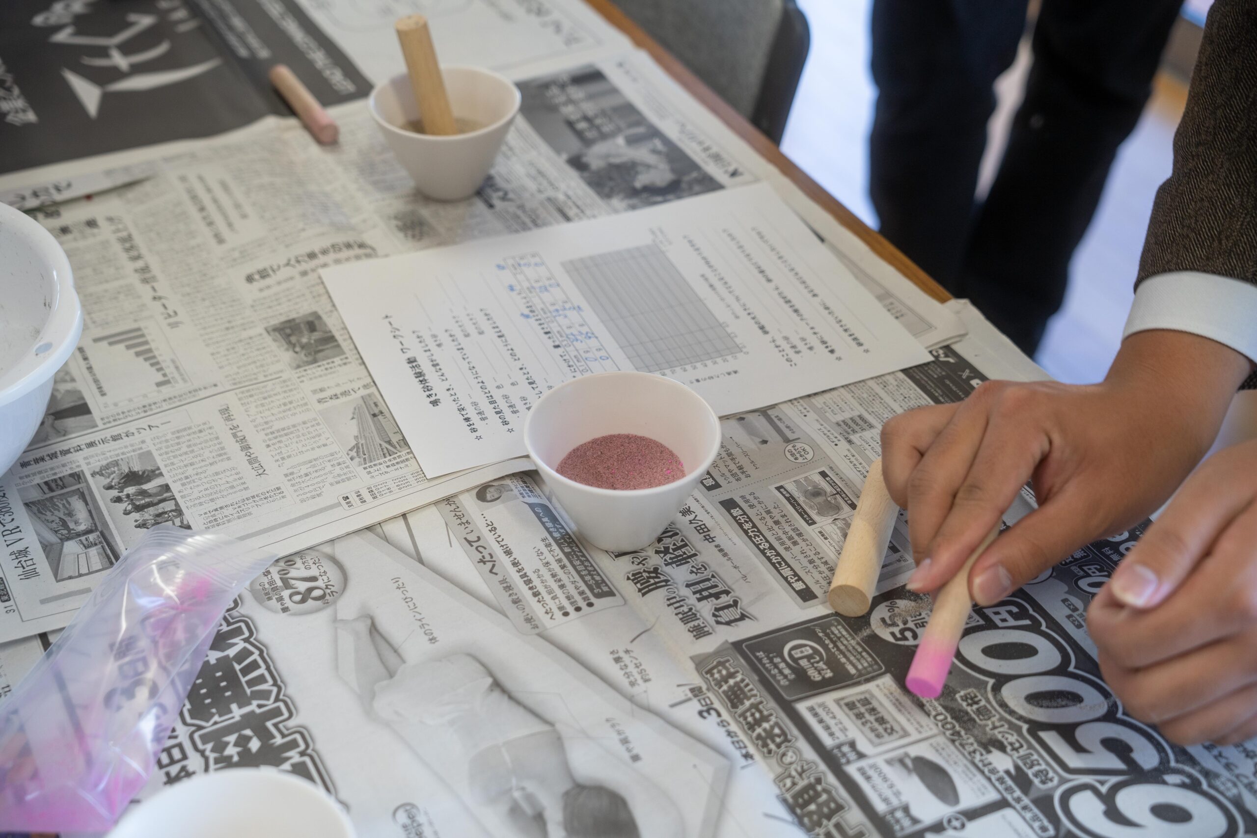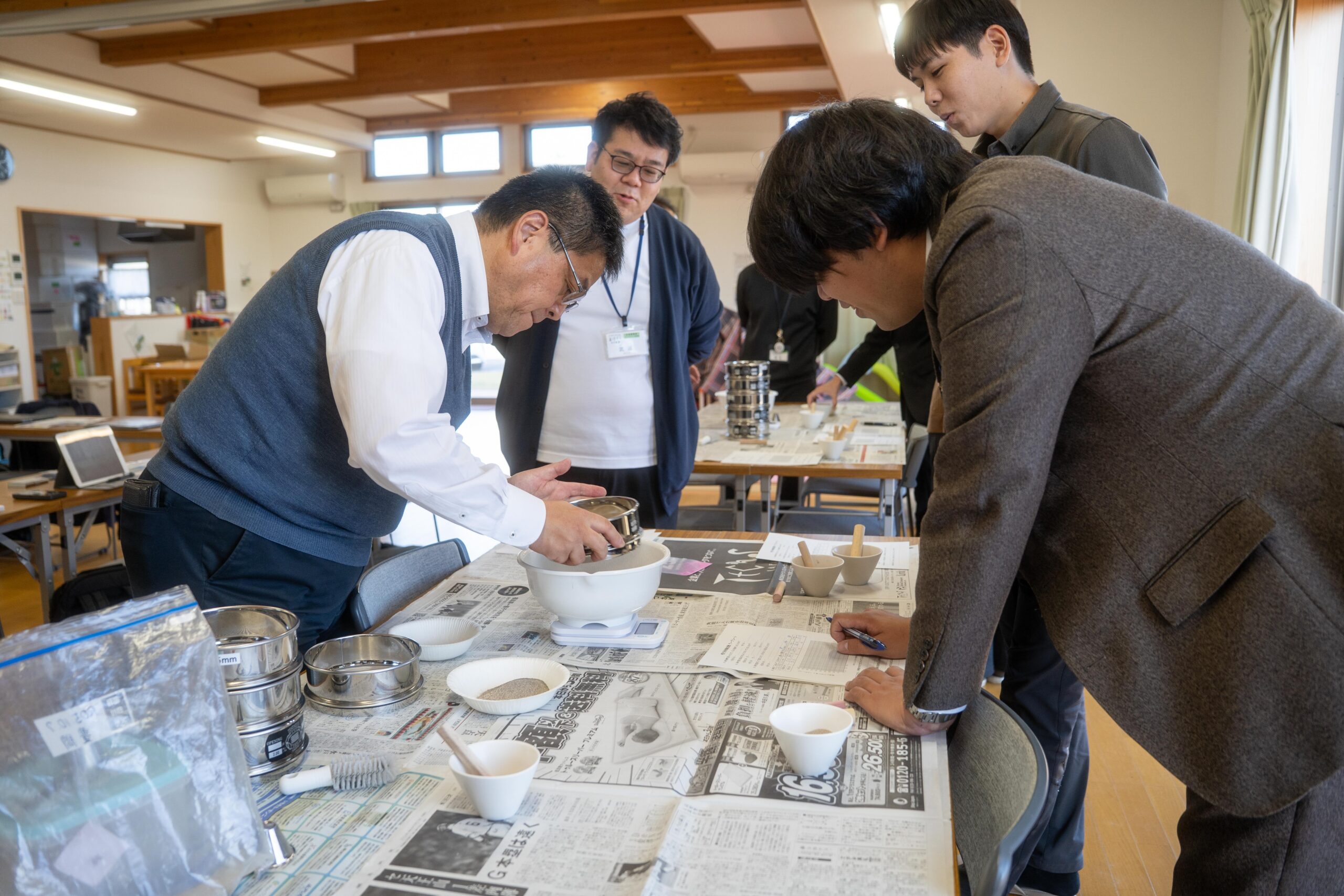 実際に鳴き砂を鳴らしながら音を発する条件を学びました。業務の中で研究開発に携わっている参加者が多く、専門的な観点での質問が出るなど活発な意見交換が広がり、知見が深まる交流となりました。