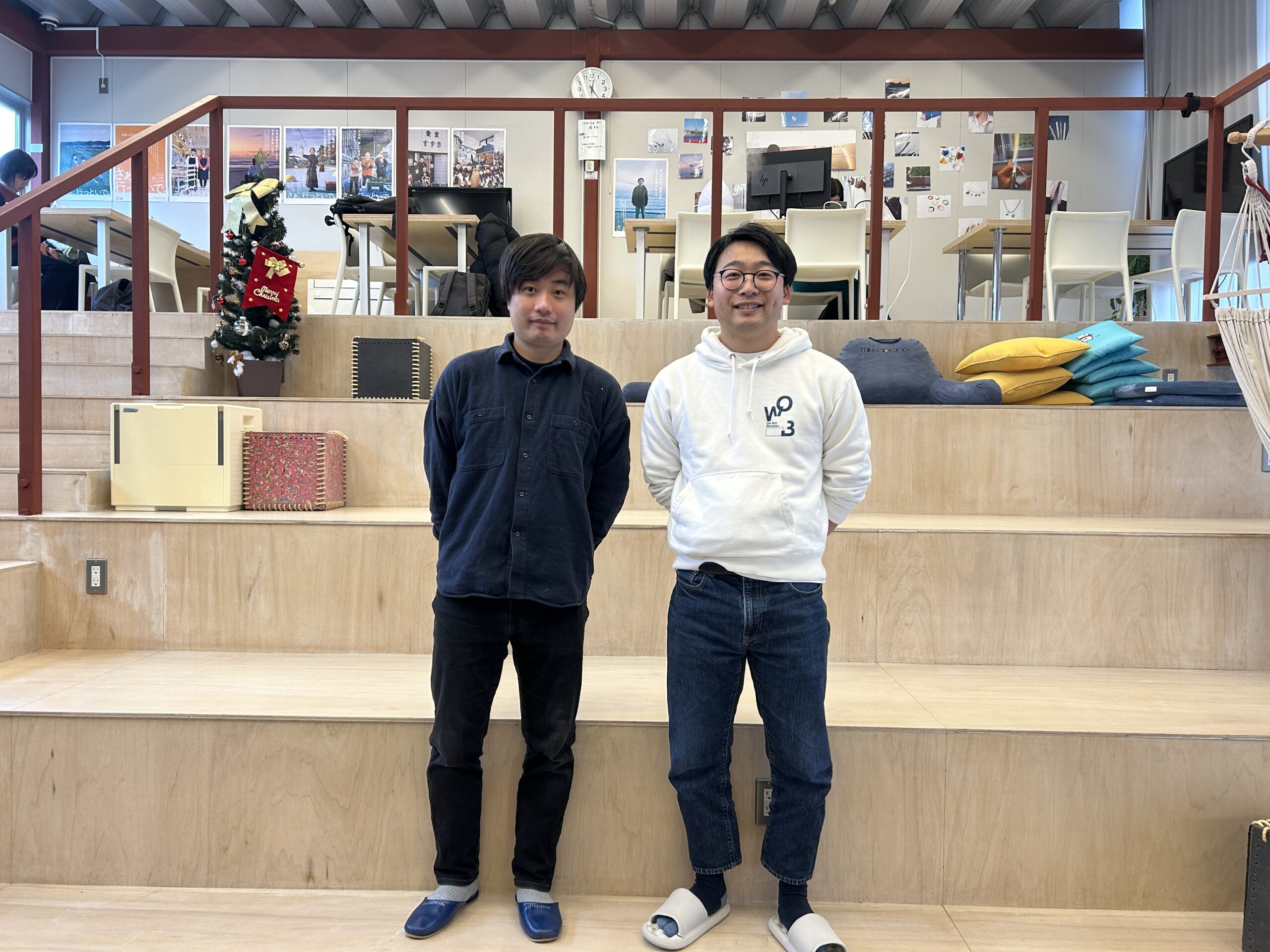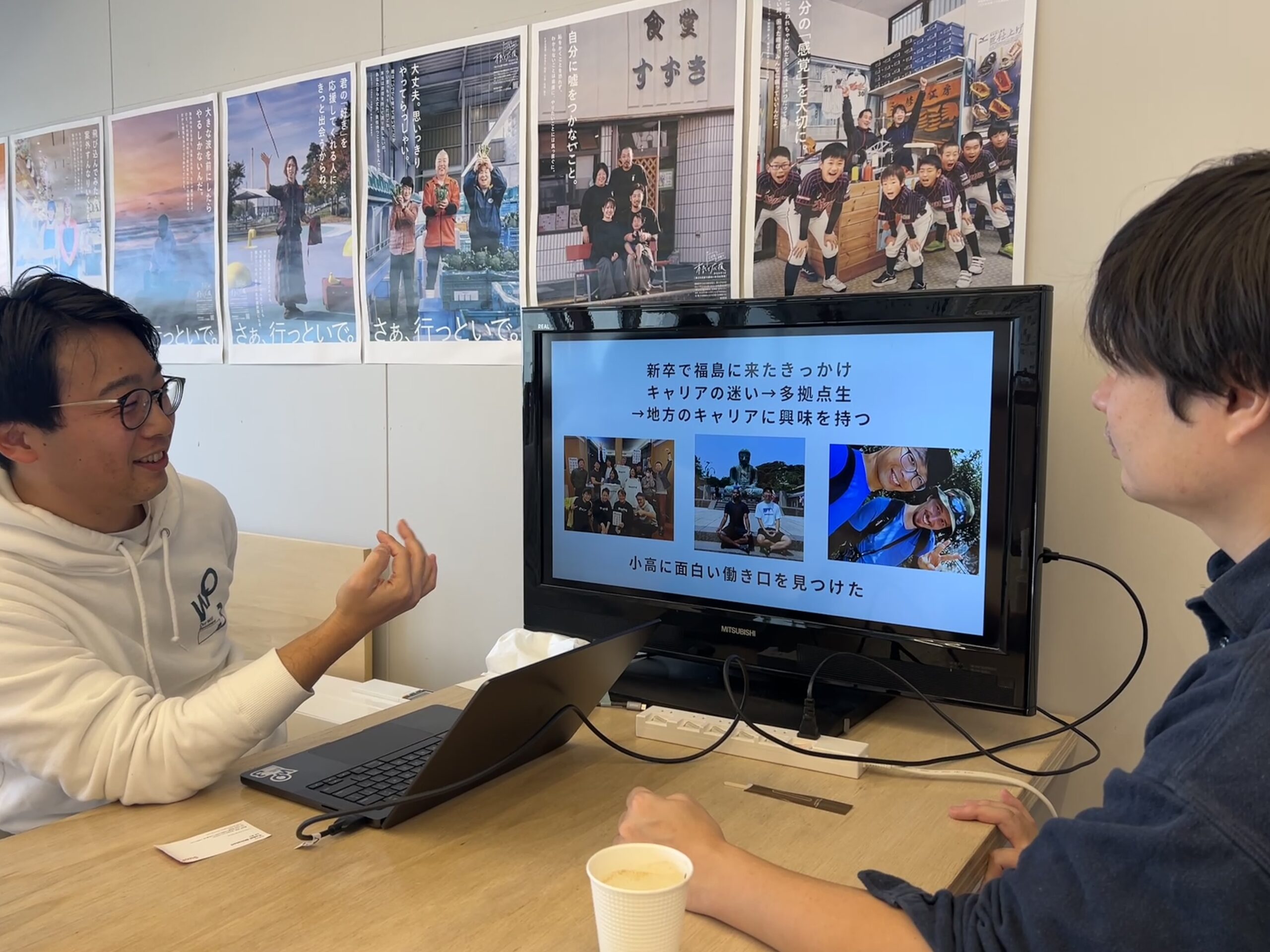 地域の「遊び」を起点に人と人をつなぐ只野福太郎さん(写真左)。満月相撲などの実践を通じて、浜通りに新しい文化と関係性を生み出しています。その楽しそうに語る姿から、挑戦を前向きに受け止める地域の空気が自然と伝わってきました。