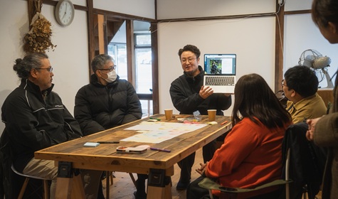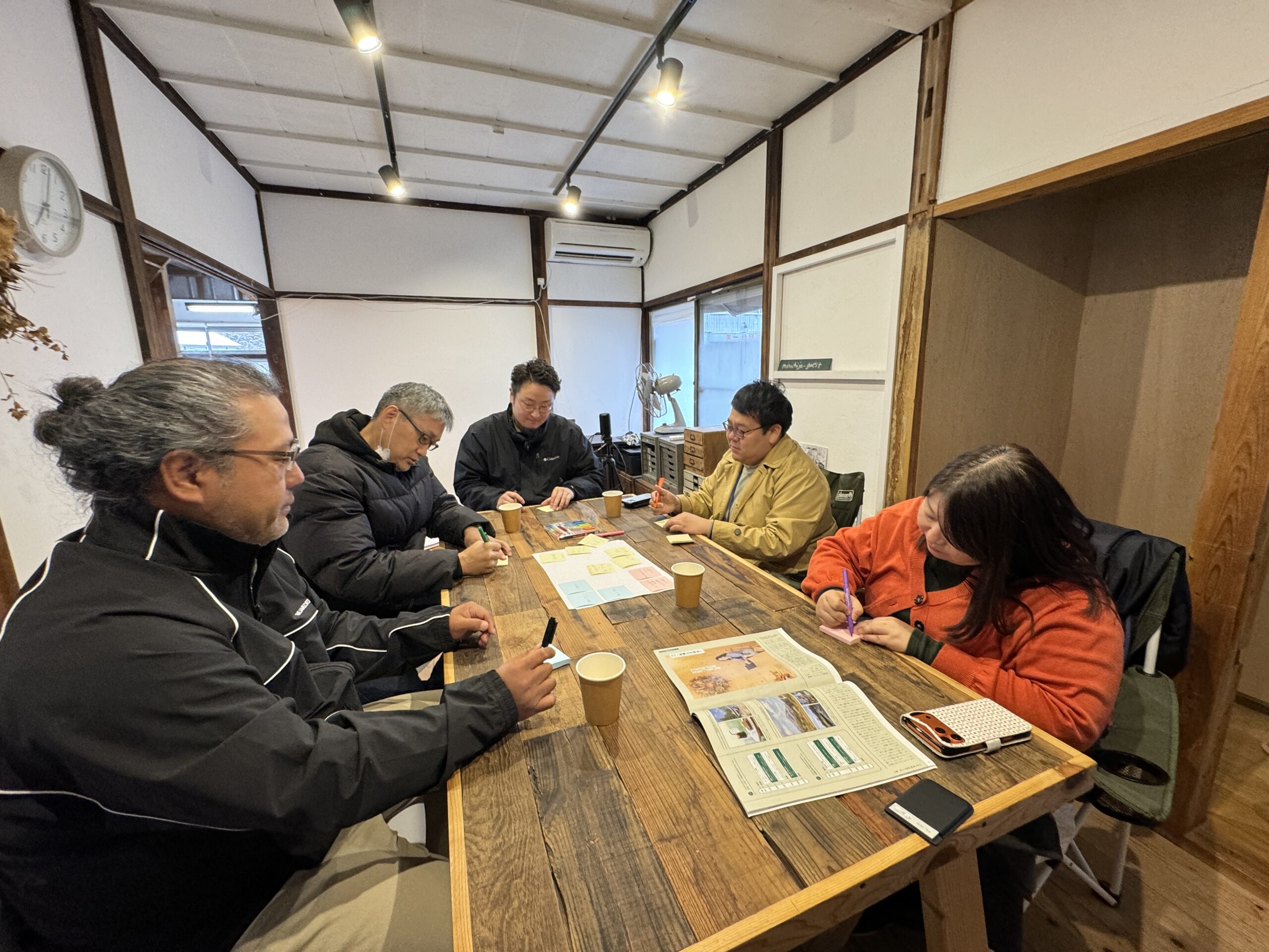 お試し住宅兼コミュニティ拠点の「未日常」で、施設の役割や活用方法について説明がされました。商店街の古写真や空間の工夫に触れ、町の記憶と未来をつなぐ場づくりを学びながら、磐梯町でのお試し移住やワーケーションのイメージが湧く時間となりました。