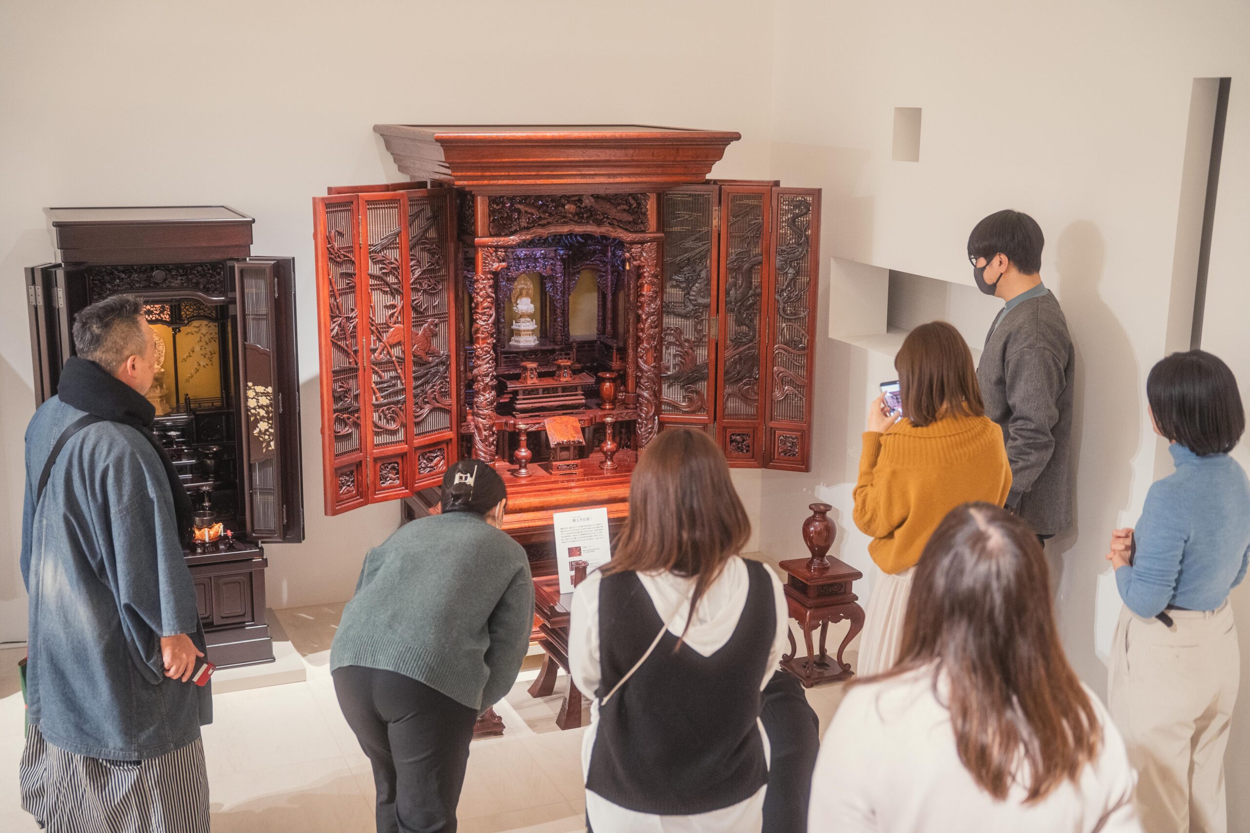 工場やショールームでは、資材加工から彫刻、塗装などの工程を間近で見学しました。職人の手仕事と精緻な設計が連なる現場に、参加者は技術力の高さを実感すると同時に、会津に根付く歴史や実直な人の気質を感じていました。