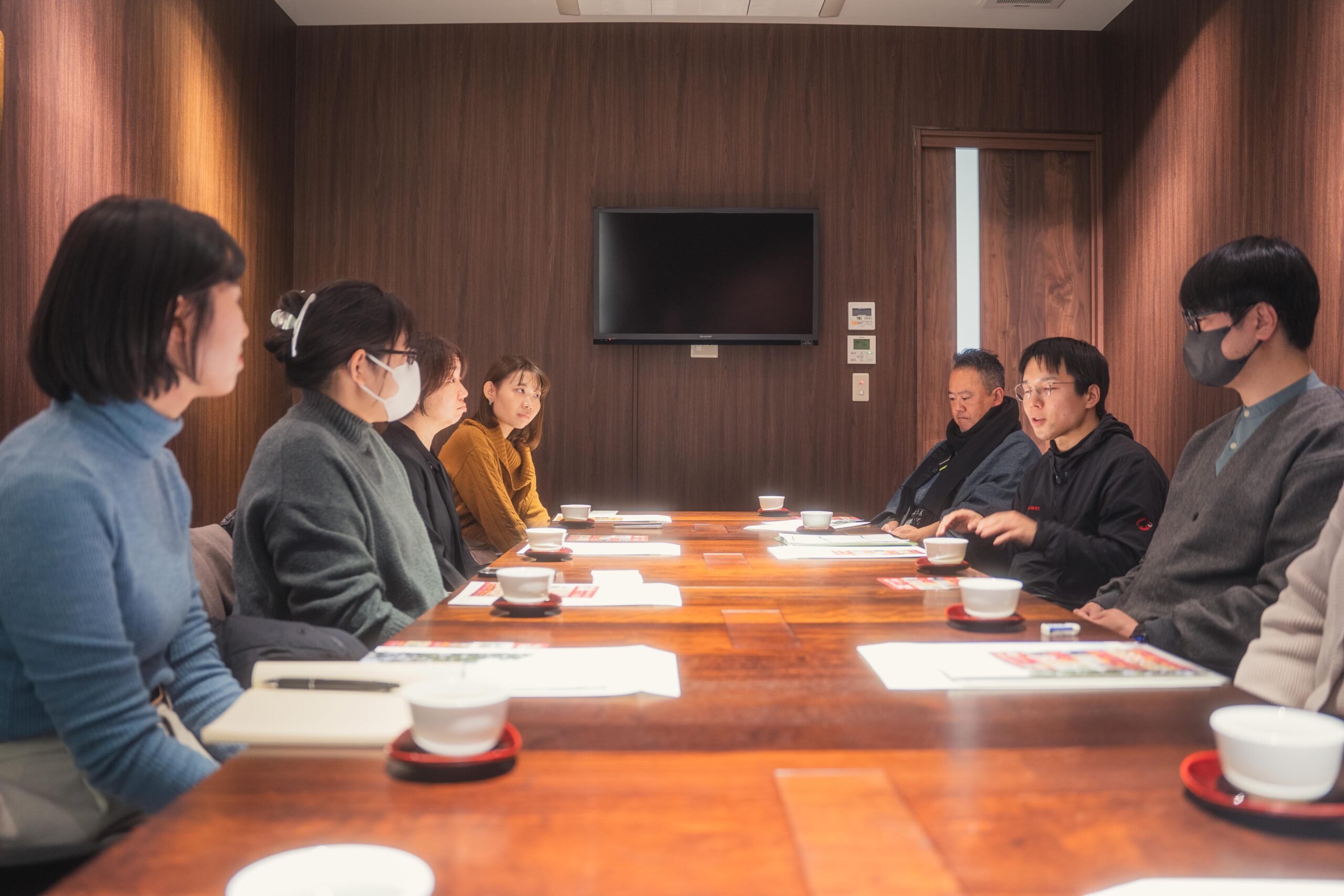 新領域開拓室の山口真人さん(写真左)から、他分野との協業・デジタル化・海外展開など、新たに挑戦している取組について聞きました。担い手確保や技術継承の課題にも思いを巡らせながら、自分たちにできることを考える時間となりました。