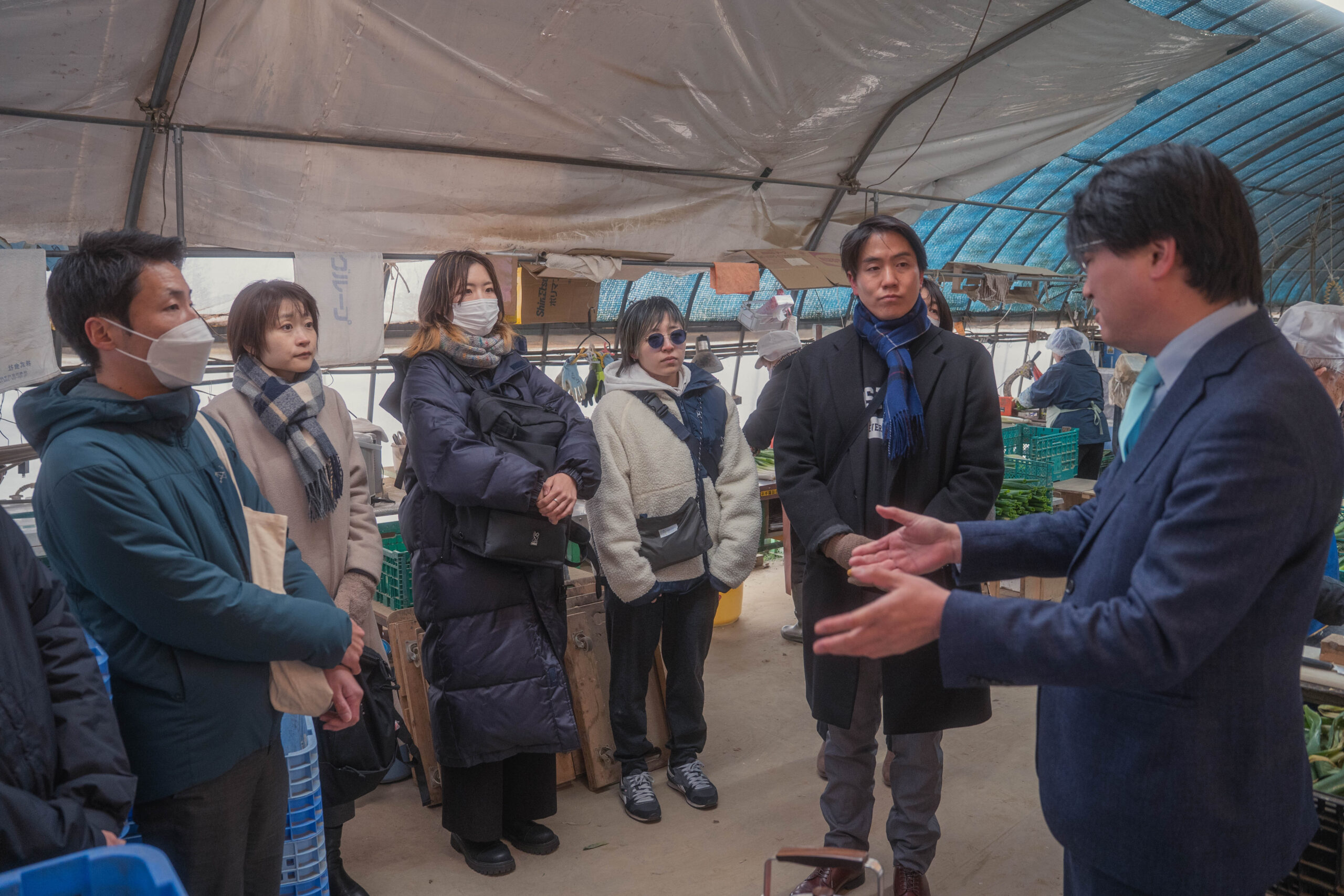 ・有限会社M&Aふぁーむ・わたなべ 代表である渡辺俊史さんの案内で、菌床椎茸やネギの生産現場を見学し、地域雇用や持続可能な農業についての意見交換